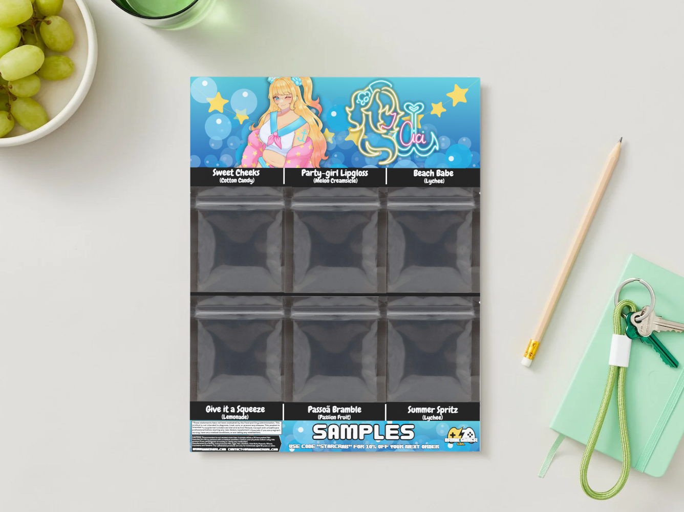 The sample pack features 6 partner flavors.